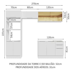 - 52 cm de profundidade no balcão e na torre e 31 cm nos aéreos