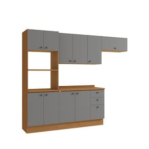 Acabamento: 100% BP / Pintura Touch | Cor: Canela/Cinza Sagrado | Corrediças: Telescópicas | Dobradiça: Com Amortecimento | Garantia: 3 meses para defeito de fabricação | Matéria-prima: MDP / MDP BP | Peso suportado por cada gaveta: 6 Kg | Peso suportado por cada prateleira: 7 kg | Puxadores: Metálicos | Quantidade de gavetas: 3 | Quantidade de portas: 1 / 3 / 4 | Quantidade de prateleiras: 1 / 2 / 4 | Sistema de montagem: Parafuso Philips / Parafuso Philips e Minifix | Tipo de porta: Bater | Duração da garantia: 3 meses | Tipo de garantia: Garantia do fabricante | Montagem: Necessita montagem | Tipo de móveis de cozinha: Combo de móveis de cozinha | Requer montagem: Sim