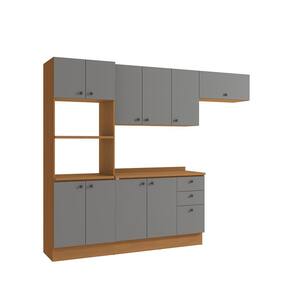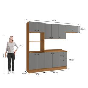 Já as frentes, na cor cinza sagrado, contam com acabamento fosco em BP, proporcionando maior durablidade contra riscos, arranhões e gotas d'água. Uma combinação elegante e moderna, que dará ainda mais destaque ao seu espaço, deixando sua cozinha perfeita. Versátil e funcional, são 2,20m de altura, 2,70m de largura e 52cm de profundidade, perfeito para todos os espaços, o combo une o balcão de pia, kit forno e microondas, além do aéreo de pia e o basculante, que juntos, irão transformar seu ambiente e garantir ainda mais praticidade na organização e preparo de receitas.