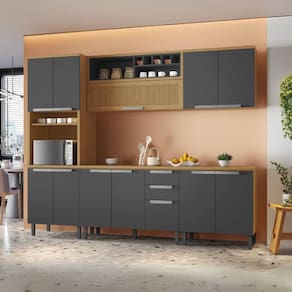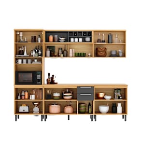 Pensada para diferentes tamanhos de cozinha, a New Porto se adapta tanto a ambientes amplos quanto compactos. Os pés reguláveis garantem fácil nivelamento, enquanto as dobradiças metálicas de 35mm oferecem resistência e estabilidade ao uso diário. Com prateleiras bem distribuídas e soluções inteligentes, como gavetas com divisor de talheres e compartimentos internos, essa cozinha proporciona praticidade, beleza e exclusividade para transformar sua rotina.Informações adicionais: Produto entregue desmontado, com manual de montagem incluso