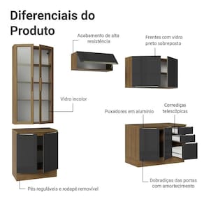 Fabricada com alto padrão de qualidade, a cozinha conta com vidro incolor sobreposto nas frentes e portas, puxadores em alumínio, gavetas com corrediças telescópicas de abertura total, portas com amortecimento para fechamento suave.