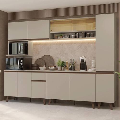 Cor: Bege | Garantia: 3 meses contra de fabricação | Dimensões - Altura: 211 cm | Dimensões - Largura: 280 cm | Dimensões - Profundidade: 52 cm | Produto: Cozinha Completa | Marca: Madesa | Peso aproximado: 150,1 kg | Material: MDP | Estado de Origem: RS | Conteúdo da embalagem: Uma Cozinha Completa | Material para Filtro: MDP | Instruções/Cuidados: Utilize um pano limpo, levemente umedecido e seque em seguida a superfície. Não usar produtos químicos ou abrasivos para a limpeza. Recomendamos polir seu móvel com lustra-móveis duas a três vezes por ano. | Produto precisa de Montagem?: Sim | Inclui tampo: Sim | Peso Produto Com Embalagem (Kg): | Altura do Produto com Embalagem (cm): 83,2 | Largura Produto Com Embalagem (cm): 66,1 | Comprimento Produto Com Embalagem (cm): 199,8 | Descrição do Tamanho: 211 cm x 280 cm x 52 cm | Nome do Simples no Fornecedor: Armário de Cozinha Completa 280 cm Crema Nice Madesa 03 | Fabricante: Madesa | RBN: Casa/Móveis/Móveis para Escritório em Casa | Quantidade de Gavetas: 1 | Quantidade de portas: 11 | Tipo de móveis de cozinha: Cozinha Completa | Materiais do corpo: MDP | Quantidade de caixas de embalagem: 10 | Bullet Point 1: Dimensões: 211 cm altura x 280 cm largura x 52 cm profundidade | Bullet Point 2: A linha Nice chega em uma nova versão no tom Crema, uma tonalidade suave que transmite aconchego e leveza | Bullet Point 3: Os puxadores em bronze metalizado e pés em bronze sólido, que acrescentam um toque contemporâneo | Bullet Point 4: Possui acabamento de alta resistência, conservando a beleza do móvel por muito mais tempo | É Frágil: Não | Quantidade de Itens: 1 | Certificação de teste externa: Sim | Modelo: GRNC2800037P | Componentes incluídos: Portas | Precisa de baterias ou pilhas: Não | da peça (part_number): GRNC2800037P | Peso do item (item_weight): ;unit=kilograms | Dimensões do item P x L x A (item_depth_width_height): depth#value=52;depth#unit=centimeters;height#value=211;height#unit=centimeters;width#value=280;width#unit=centimeters | Requer montagem (REQUIRES_ASSEMBLY): Sim | Inclui manual de montagem (INCLUDES_ASSEMBLY_MANUAL): Sim | Inclui manual de montagem: Sim | Cor: Crema