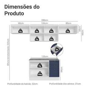 Profundidade: 52 cm (módulos inferiores) 31 cm (aéreos)