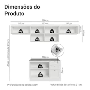 Profundidade: 52 cm (módulos inferiores) 31 cm (aéreos)
