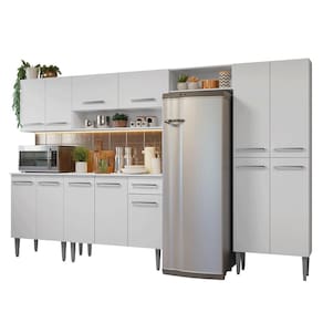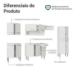 A linha Emilly se destaca pelo acabamento de alta resistência, puxadores em alumínio, corrediças e dobradiças metálicas, garantindo durabilidade no uso diário. Os pés reguláveis proporcionam estabilidade e facilitam a limpeza. Com acabamento Branco, sua cozinha ganha um toque suave de modernidade, podendo ser combinada com diferentes estilos de decoração.