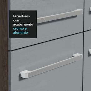 Qualidade que cabe no bolso: Com ótimo custo-benefício, o móvel é fabricado com materiais de ótima qualidade, garantindo maior vida útil. Possui corrediças e dobradiças metálicas, puxadores com alumínio e pés ajustáveis em PVC.