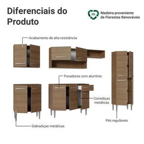 A linha Emilly se destaca pelo acabamento de alta resistência, puxadores em alumínio, corrediças e dobradiças metálicas, garantindo durabilidade no uso diário. Os pés reguláveis proporcionam estabilidade e facilitam a limpeza. Sua cozinha ganha um visual acolhedor e contemporâneo com o acabamento em tom amadeirado Rustic.