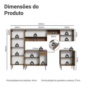 - 44 cm de profundidade nos balcões e 27 cm de profundidade nos aéreos e no paneleiro