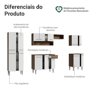 Qualidade acessível: Com excelente custo-benefício, fabricada com materiais duráveis, garantindo maior vida útil. Possui corrediças e dobradiças metálicas e pés ajustáveis em PVC.