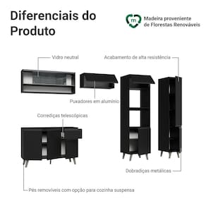 O acabamento de alta resistência no tom preto garante um visual moderno e sofisticado à cozinha. Os puxadores em cinza titanium valorizam ainda mais o ambiente,