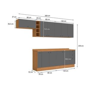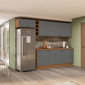 Já as frentes, na cor cinza sagrado, contam com acabamento fosco em BP, proporcionando maior durablidade contra riscos, arranhões e gotas d'água. Uma combinação elegante e moderna, que dará ainda mais destaque ao seu espaço, deixando sua cozinha perfeita. Completo e muito funcional, são 2,20m de altura, 3m de largura e 52cm de profundidade, perfeito para todos os espaços, o combo une três balcões, medindo 20cm, com o porta-tempero, 80cm e o balcão de pia, além dos aéreos nas mesmas medidas e um basculante, uma composição versátil e indispensável para quem procura por funcionalidade.