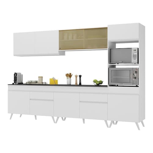 Armário De Cozinha Completa 302cm Veneza Multimóveis V3689 Branco Branco
