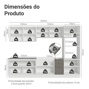 Profundidade: 52 cm (módulos inferiores) 31 cm (aéreos)