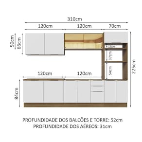 - 52 cm de profundidade nos balcões e na torre e 31 cm nos aéreos