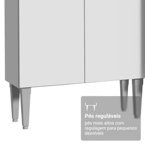 Qualidade acessível: Com excelente custo-benefício, fabricada com materiais duráveis, garantindo maior vida útil. Possui corrediças e dobradiças metálicas e pés ajustáveis em PVC.