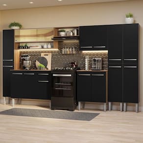 Além da ótima divisão interna e externa, esta cozinha é composta por módulos avulsos, o que permite uma adaptação personalizada ao espaço disponível em seu ambiente, tornando a cozinha planejada uma realidade ao seu alcance.