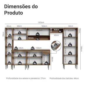 - 44 cm de profundidade nos balcões e 27cm nos aéreos/paneleiro