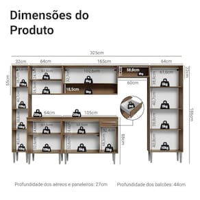 - 44 cm de profundidade nos balcões e 27cm nos aéreos/paneleiro