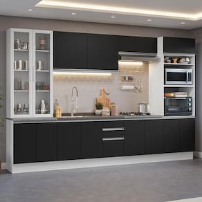 COR: Preto | Garantia: 3 meses contra defeitos de fabricação | Dimensões - Altura: 225 cm | Dimensões - Largura: 340 cm | Dimensões - Profundidade: 52 cm | Peso aproximado: 225 kg | Produto: Cozinha Completa | Marca: Madesa | Material: MDP | RBN: Casa/Móveis/Móveis de Cozinha/Móveis de Cozinha Completa | Conteúdo da embalagem: Uma Cozinha Completa | Instruções/Cuidados: Utilize um pano limpo, levemente umedecido e seque em seguida a superfície. Não usar produtos químicos ou abrasivos para a limpeza. Recomendamos polir seu móvel com lustra-móveis duas a três vezes por ano. | Altura do Produto com Embalagem (cm): 113,5 | Largura Produto Com Embalagem (cm): 60,2 | Comprimento Produto Com Embalagem (cm): 228,2 | Peso Produto Com Embalagem (Kg): 224,64 | Produto precisa de Montagem?: Sim | Descrição do Tamanho: 225 cm x 340 cm x 52 cm | Estado de Origem: RS | Material para Filtro: MDP | Cômodo Indicado: Cozinhas | Nome do Simples no Fornecedor: Armário de Cozinha Completa 340cm Branco/Preto Glamy Madesa 01 | Contato do Fabricante: contato@madesa.com | Fabricante: Madesa | Quantidade de caixas de embalagem: 21 | Quantidade de portas: 14 | Quantidade de gavetas: 3 | Tipo de móveis de cozinha: Cozinha Completa | Inclui tampo: Não | Tipo de Pé: Regulável | Materiais do corpo: MDP Cor: Branco/Preto