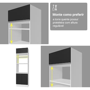 Para completar, o móvel possui acabamento de alta resistência que combina os tons branco e preto.