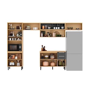 Armário De Cozinha Completa 350cm New Porto Grafite Madeira Itatiaia A Cozinha Itatiaia New Porto une elegância, funcionalidade e qualidade em cada detalhe. Produzida 100% em MDF e com acabamento moderno na cor grafite, essa linha oferece um visual sofisticado e aconchegante para o ambiente. Seu design contemporâneo conta com pintura eletrostática UV, que garante maior durabilidade e um acabamento uniforme e resistente. Com 350cm de largura, a composição é versátil e bem distribuída. Inclui: Um paneleiro com uma porta e espaço para forno ou micro-ondas de até 70cm de largura, ideal para integrar eletrodomésticos ao projeto de forma prática. Um armário aéreo de 120cm com uma porta horizontal e nicho aberto, oferecendo fácil acesso a itens do dia a dia. Dois armários aéreos adicionais de 80cm, também com porta horizontal, que amplia ainda mais a capacidade de organização. Um balcão de 120cm com três portas e duas gavetas e um tampo em BP resistente a altas temperaturas (até 120 C). Pensada para diferentes tamanhos de cozinha, a New Porto se adapta tanto a ambientes amplos quanto compactos. Os pés reguláveis garantem fácil nivelamento, enquanto as dobradiças metálicas de 35mm oferecem resistência e estabilidade ao uso diário. Com prateleiras bem distribuídas e soluções inteligentes, como gavetas com divisor de talheres e compartimentos internos, essa cozinha proporciona praticidade, beleza e exclusividade para transformar sua rotina.Informações adicionais: Produto entregue desmontado, com manual de montagem incluso Eletrodomésticos e eletroportáteis meramente ilustrativos e não inclusos. Acompanha Manual de Instalação: Sim | Material predominante: MDF | Necessita Montagem: Sim | Tipo de móvel: Armário