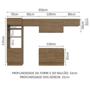 - 52 cm de profundidade nos balcões e torre e 31 cm nos aéreos