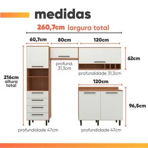 Importante sobre a entrega: A entrega é realizada até a portaria ou porta de entrada do endereço indicado, desde que o acesso seja permitido. Para locais com portaria, a entrega será feita no piso térreo. Não realizamos montagem, desmontagem, transporte por escadas ou içamento. É responsabilidade do cliente verificar se as dimensões do produto são compatíveis com portas, elevadores e corredores. Evite imprevistos: confira todos os detalhes antes de concluir sua compra. MEDIDAS ARMÁRIO:: A = 216 cm (com pés) L = 260,7 cm P = 47 cm | MEDIDAS PÉS:: A = 14,5 cm L = 4 cm P = 4 cm | PRATELEIRAS SUPORTAM ATÉ:: 5 kg | GAVETAS SUPORTAM ATÉ:: 5 kg | TAMPO SUPORTA ATÉ:: 15 kg | PESO:: 139,1 kg | MARCA:: Batrol | COR:: Madeirado/Off White | PESO SUPORTADO:: 120 kg | MODELO:: Armário De Cozinha Completa 5 Portas 4 Gavetas Grécia | PINTURA:: UV de alta qualidade | PORTAS:: 5 | NICHOS:: 3 | MATERIAL:: MDP | ESPESSURA DO MATERIAL:: 12 e 15 mm | TIPO DE PORTA:: Bater / Basculantes | PRATELEIRAS:: 10 | ACABAMENTO:: Fosco | PISTÃO A GÁS:: Sim | DOBRADIÇAS:: Metálicas | GAVETAS:: 4 | CORREDIÇAS:: Telescópicas | QUANTIDADE DE PUXADORES:: 9 | PUXADORES:: Plástico | PÉS:: 10 (reguláveis) | SISTEMA DE MONTAGEM:: Parafusos e cavilhas | DIFERENCIAIS:: Design elegante e moderno / Pintura UV de alta qualidade / Amplo espaço para melhor armazenamento / Corrediças telescópicas / Pistão a gás / Pés reguláveis. | INSTRUÇÕES E CUIDADOS:: Para maior durabilidade, recomendável que a limpeza dos móveis seja feita com pano limpo e seco. Não usar produtos químicos ou abrasivos. | GARANTIA:: 3 meses pelo fabricante. | AVISO:: Importante sobre a entrega: A entrega é realizada até a portaria ou porta de entrada do endereço indicado, desde que o acesso seja permitido. Para locais com portaria, a entrega será feita no piso térreo. | MATERIAL DOS PÉS:: Plástico | Requer montagem: Sim | Tipo de móveis de cozinha: Armário | Altura da embalagem: 58 cm | Comprimento da embalagem: 206 cm | Largura da embalagem: 64 cm | Peso da embalagem: 14450 g | Tipo da embalagem: sem embalagem adicional | Cor: Madeirado/Off White