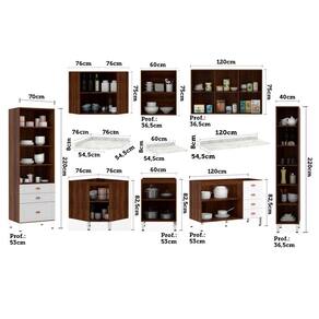 Ambiente composto por: ? 1 Paneleiro 70cm 2 Portas 2 Gavetas 1 Gavetão Safira Luciane Móveis 220 x 70 x 53 -Altura x Largura x Profundidade - cm- ? 1 Paneleiro 40 cm Raso 2 Portas Safira Luciane Móveis 220 x 40 x 36,5 -Altura x Largura x Profundidade - cm- ? 1 Armário para Cozinha Canto Diagonal 2 Portas Safira Luciane Móveis 75 x 76 x 76 -Altura x Largura x Profundidade - cm- ? 1 Armário para Cozinha 60 cm 2 Portas Safira Luciane Móveis 75 x 60 x 36,5 -Altura x Largura x Profundidade - cm- ? 1 Armário para Cozinha 120 cm 3 Portas Safira Luciane 75 x 120 x 36,5 -Altura x Largura x Profundidade - cm- ? 1 Balcão de Cozinha sem Tampo Canto Diagonal 1 Porta Safira Luciane Móveis 88 x 76 x 76 -Altura x Largura x Profundidade - cm- ? 1 Balcão de Cozinha sem Tampo 60cm 2 Portas Safira Luciane Móveis 88 x 60 x 53 -Altura x Largura x Profundidade - cm- ? 1 Balcão de Pia sem Tampo para Cozinha 120cm 2 Portas 4 Gavetas Safira Luciane Móveis 88 x 120 x 53 -Altura x Largura x Profundidade - cm- ? 1 Tampo Luciane 60 cm 8 x 60 x 54,5 -Altura x Largura x Profundidade - cm- ? 1 Tampo Luciane Canto Diagonal 76 cm 8 x 76 x 76 -Altura x Largura x Profundidade - cm- ? 1 Tampo para Balcão 120cm em MDP 25mm com Acabamento em BP Luciane Móveis 8 x 120 x 54,5 -Altura x Largura x Profundidade - cm-