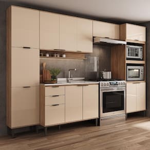 O Conjunto Miami Motion é uma modulação cheia de conceito integrando muitas prateleiras e espaços para organização. Traz a modernidade do estilo industrial novaiorquino, fazendo a sua área gourmet ser o centro das atenções.