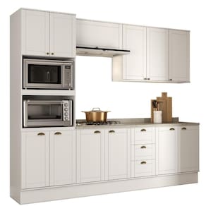 A Cozinha Milla Bloom lembra as cozinhas tradicionais, com detalhes especiais em frisos e puxadores – porém, tudo em uma simplicidade visual. Possui 5 módulos, entre eles aéreo com 3 portas 1200 mm, balcão com 1200 mm, aéreo basculante de 800 mm e torre quente e um balcão de 800 mm. Conta também com puxadores em metal no acabamento “ouro velho” e matéria-prima em BP e MDF, criando uma harmonia fantástica com os demais itens dentro do espaço em que a cozinha está inserida.