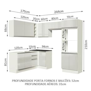 - 52 cm de profundidade nos módulos inferiores e 31 cm nos aéreos