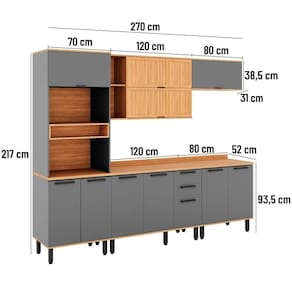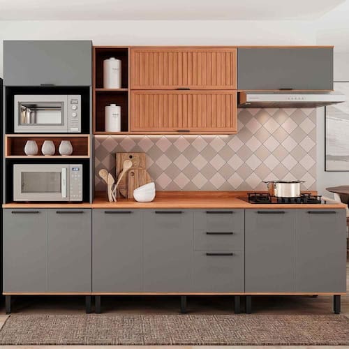 Cor: Freijó com Cinza | Inclui manual de montagem: Sim | Materiais do corpo: MDP | Requer Montagem: Sim | Tipo de móveis de cozinha: Cozinha Completa