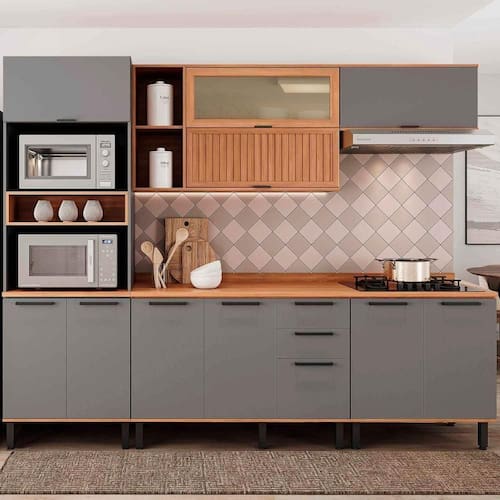 Cor: Freijó com Cinza | Inclui manual de montagem: Sim | Materiais do corpo: MDP | Requer Montagem: Sim | Tipo de móveis de cozinha: Cozinha Completa