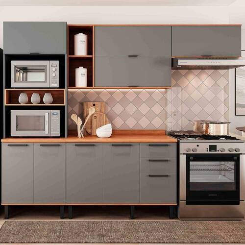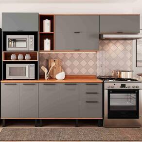 Cor: Freijó com Cinza | Inclui manual de montagem: Sim | Materiais do corpo: MDP | Requer Montagem: Sim | Tipo de móveis de cozinha: Cozinha Completa
