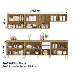 A Esplanada Móveis se responsabiliza pela dos produtos adquiridos até a porta de entrada ou portaria do endereço indicado, se a portaria do condomínio permitir, as s são efetuadas no piso térreo e é de responsabilidade do cliente a locomoção da mercadoria até seu apartamento ou casa. MEDIDAS:: [ A ] = 84 cm (Balcões) / 67 cm (Armários Aéreos) [ L ] = 258,8 cm [ P ] = 48 cm (Balcões) / 28,8 cm (Armários Aéreos) | PESO:: 127,04kg | ARMÁRIO AÉREO SUPORTA ATÉ:: 10kg | BALCÃO SUPORTA ATÉ:: 35kg | MODELO:: Armário de Cozinha Completa com Balcão 12 Portas 2 Gavetas Clara Aramóveis | MARCA:: Aramóveis | COR:: Atacama / Branco | MATERIAL DA ESTRUTURA:: MDP | ACABAMENTO:: Fosco / Brilho | PORTAS:: 12 | GAVETAS:: 2 | TIPO DE PORTA:: Bater / Basculante (Armário Aéreo) | CORREDIÇAS:: Metálicas | PRATELEIRAS:: 11 | PES:: 13 | MATERIAL DOS PÉS:: Plástico | PESO SUPORTADO PRATELEIRAS:: 5kg | DOBRADIÇAS:: Metálicas | MATERIAL DOS PUXADORES:: Plástico | TIPO DE PUXADORES:: Embutidos | POSSUI VIDRO:: Vidro Reflecta | GARANTIA:: 3 meses | AVISO:: A Esplanada Móveis se responsabiliza pela dos produtos adquiridos até a porta de entrada ou portaria do endereço indicado, se a portaria do condomínio permitir, as s são efetuadas no piso térreo e é de responsabilidade do cliente Cor: Atacam/Off
