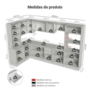A Cozinha de Canto Smart, com 447 cm de largura, é ideal para otimizar o espaço. Seu grande diferencial é a cristaleira, que traz um toque especial a cozinha.