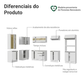 Fabricada em 100% MDF, a linha Smart garante durabilidade e alta resistência. Toda a cozinha é em branco, proporcionando um visual clean e elegante. A cristaleira e o aéreo possuem portas em vidro reflex, que agrega sofisticação e modernidade ao ambiente.