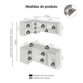 - 52 cm de profundidade nos balcões e 31 cm nos aéreos