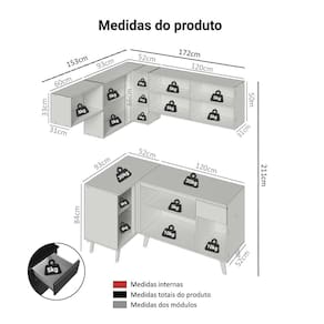 - 52 cm de profundidade nos balcões e 31 cm nos aéreos