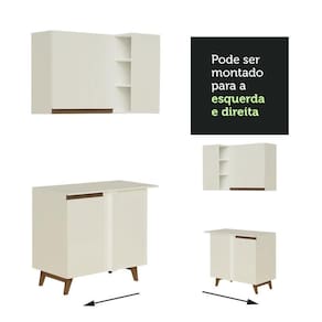 Uma grande vantagem é que a cozinha é totalmente modulada, assim você pode organizar os armários e balcões conforme a necessidade do seu ambiente. Além disso, o canto pode ser montado tanto para o lado esquerdo quanto para o direito.