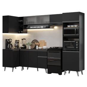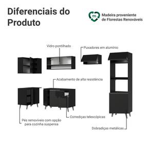 O acabamento de alta resistência no tom preto garante um visual moderno e sofisticado à cozinha. Os puxadores em cinza titanium valorizam ainda mais o ambiente,