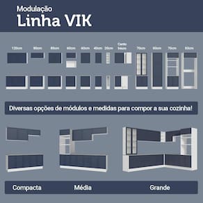 Transforme sua cozinha em um espaço mais funcional e aproveite ao máximo cada canto com a cozinha de 399 cm de largura da Linha Vik.