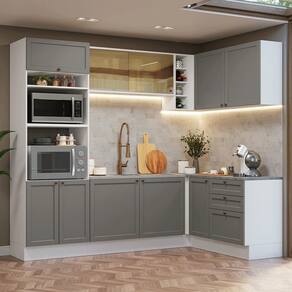 Cor: Cinza | Garantia: 3 meses contra de fabricação | Dimensões - Altura: 225 cm | Dimensões - Largura: 399 cm | Dimensões - Profundidade: 52 cm | Produto: Cozinha Completa | Marca: Madesa | Peso aproximado: 208 kg | Material: MDP | Estado de Origem: RS | Conteúdo da embalagem: Uma Cozinha Completa | Material para Filtro: MDP | Instruções/Cuidados: Utilize um pano limpo, levemente umedecido e seque em seguida a superfície. Não usar produtos químicos ou abrasivos para a limpeza. Recomendamos polir seu móvel com lustra-móveis duas a três vezes por ano. | Produto precisa de Montagem?: Sim | Inclui tampo: Não | Peso Produto Com Embalagem (Kg): 208,12 | Altura do Produto com Embalagem (cm): 118,9 | Largura Produto Com Embalagem (cm): 60,5 | Comprimento Produto Com Embalagem (cm): 228,2 | Descrição do Tamanho: 225 cm x 399 cm x 52cm | Nome do Simples no Fornecedor: Armário de Cozinha Completa de Canto 399 cm Branco/Cinza Vik Madesa 02 | Fabricante: Madesa | RBN: Casa/Móveis/Móveis para Escritório em Casa | Quantidade de Gavetas: 3 | Quantidade de portas: 10 | Tipo de móveis de cozinha: Cozinha Completa | Materiais do corpo: MDP | Quantidade de caixas de embalagem: 18 | Bullet Point 0: Dimensões: 225 cm altura x 399 cm largura x 52 cm profundidade | Bullet Point 1: A combinação perfeita entre design clássico e elementos modernos | Bullet Point 2: Inspiração no estilo americano, frentes com acabamento chanfrado e textura fosca suave ao toque | Bullet Point 3: Puxadores ponto em ouro envelhecido e portas com fechamento suave | É Frágil: Não | Quantidade de Itens: 1 | Certificação de teste externa: Sim | Modelo: GCVK399002F8 | Componentes incluídos: Portas | Precisa de baterias ou pilhas: Não | da peça: GCVK399002F8 | Preço sugerido sem impostos: | Peso do item (item_weight): ;unit=kilograms | Dimensões do item P x L x A (item_depth_width_height): depth#value=52;depth#unit=centimeters;height#value=225;height#unit=centimeters;width#value=399;width#unit=centimeters | Requer montagem (REQUIRES_ASSEMBLY): Sim | Inclui manual de montagem (INCLUDES_ASSEMBLY_MANUAL): Sim Cor: Branco/Cinza
