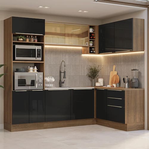 A cozinha de canto da linha Lux é ideal para aproveitar melhor cada espaço, trazendo mais organização e praticidade.