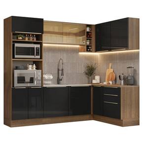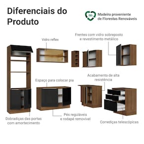 O destaque da linha Lux está no design: as portas com vidro sobreposto garantem um visual elegante e mais resistência. A combinação do amadeirado rustic com o preto cria um ambiente sofisticado.