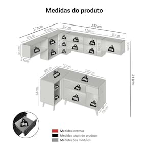 - 52 cm de profundidade nos balcões e 31 cm nos aéreos