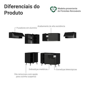 O acabamento de alta resistência no tom preto confere um visual moderno e sofisticado à cozinha. Os puxadores em cinza titanium valorizam ainda mais o ambiente.
