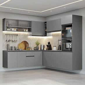 Cor: Cinza | Garantia: 12 meses | Dimensões - Altura: 211 cm | Dimensões - Largura: 445 cm | Dimensões - Profundidade: 52 cm | Produto: Cozinha | Marca: Madesa | Material: MDP | Estado de Origem: RS | Conteúdo da embalagem: 1 Cozinha Completa | Material para Filtro: MDP | Instruções/Cuidados: Utilize um pano limpo, levemente umedecido e seque em seguida a superfície. Não usar produtos químicos ou abrasivos para a limpeza. Recomendamos polir seu móvel com lustra-móveis duas a três vezes por ano. | Produto precisa de Montagem?: Sim | Peso Produto Com Embalagem (Kg): 183,35 | Altura do Produto com Embalagem (cm): 76,40 | Largura Produto Com Embalagem (cm): 66,10 | Comprimento Produto Com Embalagem (cm): 199,60 | Descrição do Tamanho: 211 cm x 445 cm x 52 cm | Nome do Simples no Fornecedor: Armário de Cozinha Completa de Canto 445cm Suspensa Cinza Nice Madesa 03 | Fabricante: Madesa | RBN: Casa/Móveis/Móveis de Quarto | Materiais do corpo: MDP | Quantidade de caixas de embalagem: 9 | Quantidade de portas: 13 | Quantidade de Gavetas: 1 | Bullet Point 1: Dimensões: 211 cm altura x 445 cm largura x 52 cm profundidade | Bullet Point 2: As corrediças proporcionam abertura total das gavetas | Bullet Point 3: Os balcões acompanham tampo, garantindo praticidade. | Bullet Point 4: Possui acabamento de alta resistência, conservando a beleza do móvel por muito mais tempo. | É Frágil: Não | Quantidade de Itens: 1 | Certificação de teste externa: Sim | Precisa de baterias ou pilhas: Não | Número da peça (part_number): GCNC4450033B | Peso do item (item_weight): value=183.35;unit=kilograms | Dimensões do item P x L x A (item_depth_width_height): depth#value=52;depth#unit=centimeters;height#value=211;height#unit=centimeters;width#value=445;width#unit=centimeters | Exige montagem (is_assembly_required): Sim | Requer montagem (REQUIRES_ASSEMBLY): Sim | Inclui manual de montagem (INCLUDES_ASSEMBLY_MANUAL): Sim | Número do modelo (model_number): GCNC4450033B | is_assembly_required: Sim | Componetes Incluidos: Portas | Linha: Nice | Tipo de móveis de cozinha: Cozinha Completa | Peso aproximado: 183 | Cor: Cinza