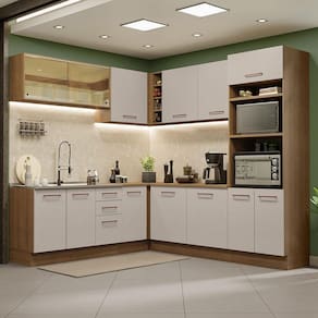 Esta Cozinha Completa de Canto da linha Agata da Madesa se destaca pelo conforto, espaço de sobra e acabamento de alta qualidade.