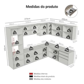 - 52 cm de profundidade nos balcões e 31 cm nos aéreos